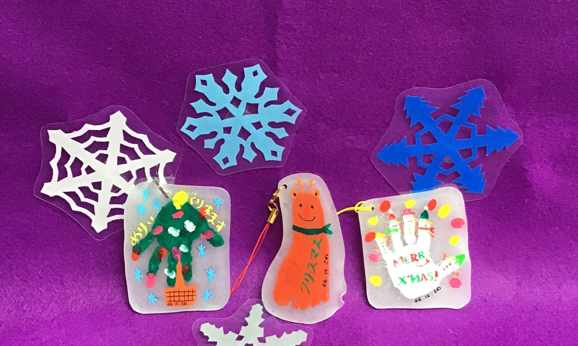 プラバンにお絵描きしたり、お子さんの手形、足形をとってクリスマス風のストラップを作りましょう!